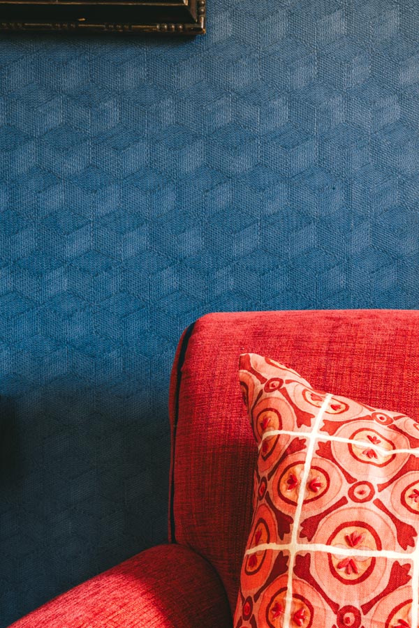 A strong use of colour throughout balanced the strong materials we helped the client choose - including walnut joinery, polished concrete flooring and feature sandstone walls.